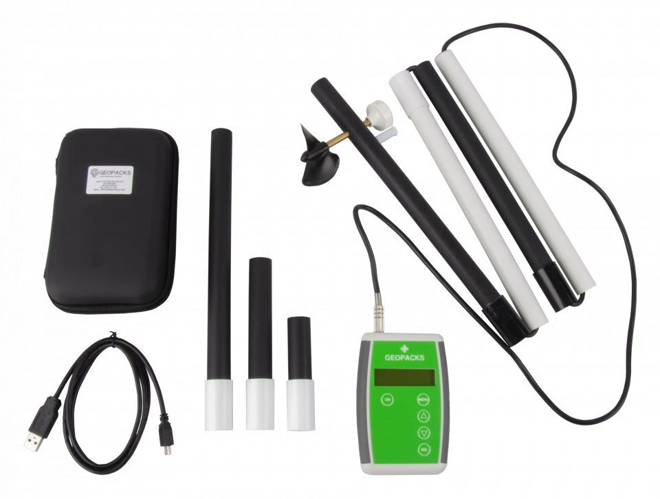 The calibrated impeller is supplied on a graduated pole for rapid deployment in the field. Three stream bed riser rods are also included to alow the water velocity to be recorded at fixed heights above the stream bed. The meter can record flow speed between 0.05m/s and 1.5m/s.
