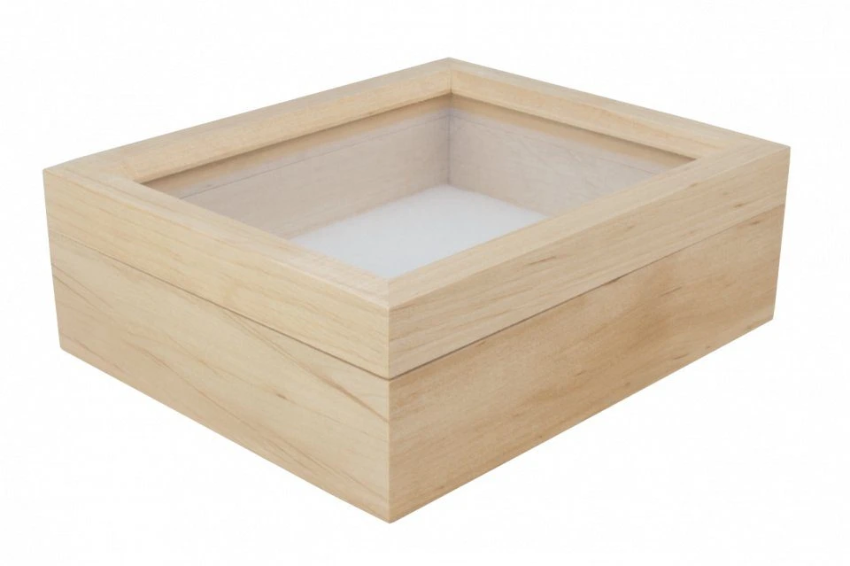 This attractive Storage Box is made from natural alder and has a glass lid for easy viewing of specimens without the need to open the lid. It is available in five sizes and has a plastazote base.