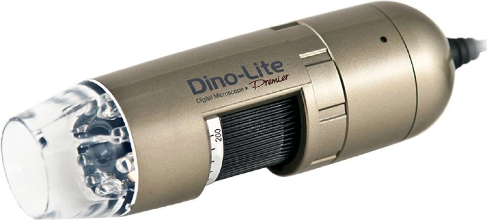 The AM4113T Dino-Lite Pro USB digital microscope was designed for professional users who demand sharp picture quality as well as access to comprehensive measurement functions. The 1.3M pixel 1/3″ image sensor provides high resolution, sharp pictures with a great field of view. A simple thumbwheel control to adjust the focus/magnification allows for an effective magnification range of between 10x and 50x (dependant upon the distance of the object from the microscope) and a further 200x setting when the microscope is directly above the object being observed. The “MicroTouch” function allows a snapshot to be taken by lightly touching the sensor area and results in less “camera shake” than a conventional push button. The 8 built-in white light LEDs with software on/off control allow for good subject illumination.