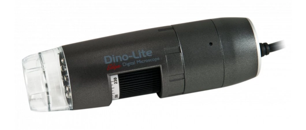 The Dino-Lite Edge range are designed for professional applications and provide 1.3MP images which are crisp and bright with low aberration and vignetting. The magnification range is x20 to x220. These compact digital microscopes come with exchangeable end caps which makes them suitable for a range of applications and situations. By removing the end cap the user will have access to more working space and the full range of magnification can be achieved. A closed cap is also provided which protects the lens when used in a dusty environment or for looking at liquid samples. A diffuser cap spreads the light evenly on the viewed subject. Eight built in LEDs provide illumination and can be turned on or off as required.