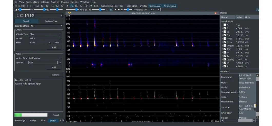 * Meta Data: Supports GUANO metadata, can apply custom metadata to files and utilize it in reports