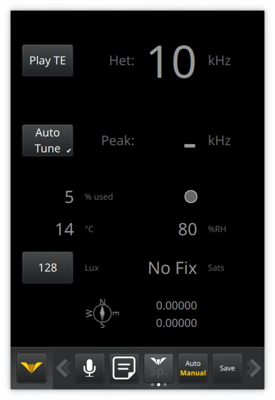 - Audio output: Heterodyne, time expansion, frequency division or pitch shift