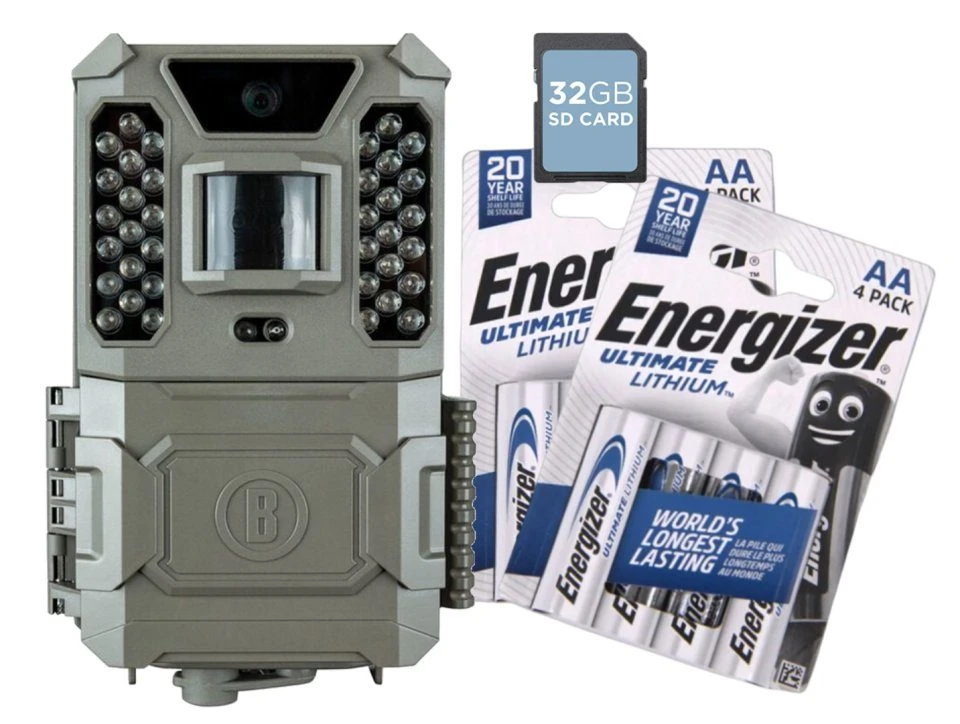 Also available as a starter bundle which includes the trail camera, 8 x lithium AA batteries and a 32GB SD card.