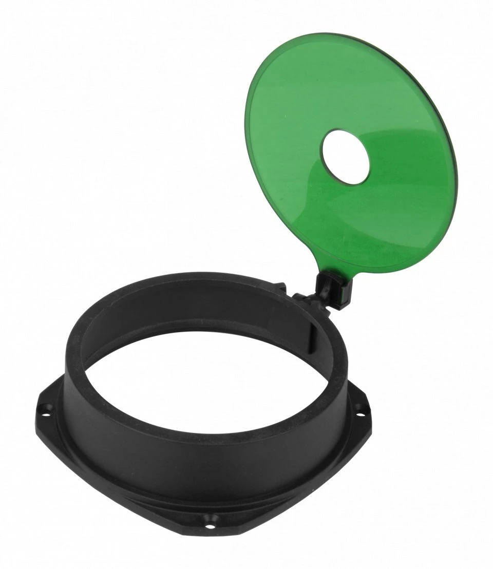 This filter flips over the torch front on a ball joint which will rotate in all directions, allowing the filter to be placed over the bulb at different angles. It also allows the filter to be simply and silently added or removed without having to detach it from the torch.