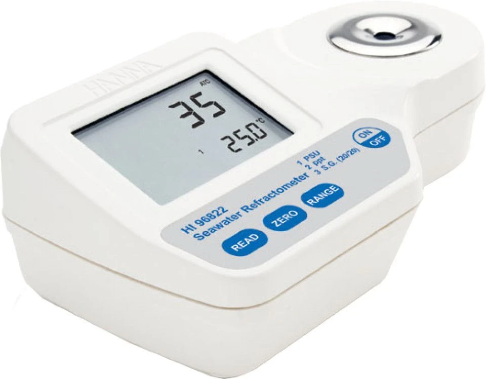 This Digital Refractometer is a rugged, portable, water resistant device that utilizes the measurement of the refractive index to determine the salinity of natural and artificial seawater, ocean water or brackish intermediates.
