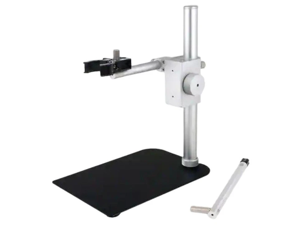 The Dino-Lite RK-06A provides a mid-range, versatile and precision made tabletop stand that is sturdy and stable. It offers smooth focus adjustment and quick vertical movement to facilitate the use of all Dino-Lite microscopes. The stand is easy to assemble and the design of its adaptable extension arm adds further mobility and flexibility to the user’s applications. The stand is constructed out of stainless steel and lightweight aluminium and provides up, down and lateral movement. The adjustable horizontal arm has a 15cm range with 360-degree rotation and with the RK-10-EX arm (included) its effective range can be extended to observe larger objects. There is also a quick vertical release function.