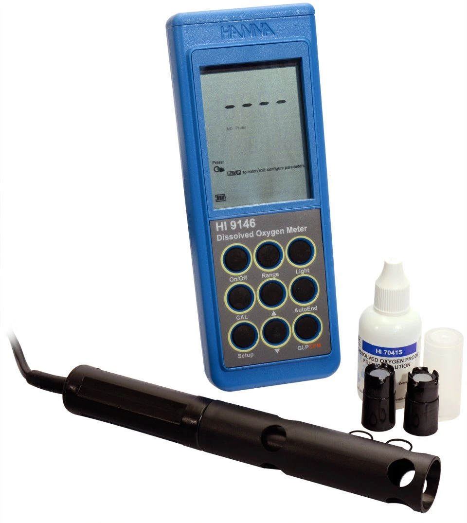 A water-resistant, microprocessor-based, dissolved oxygen meter with automatic calibration and temperature compensation.