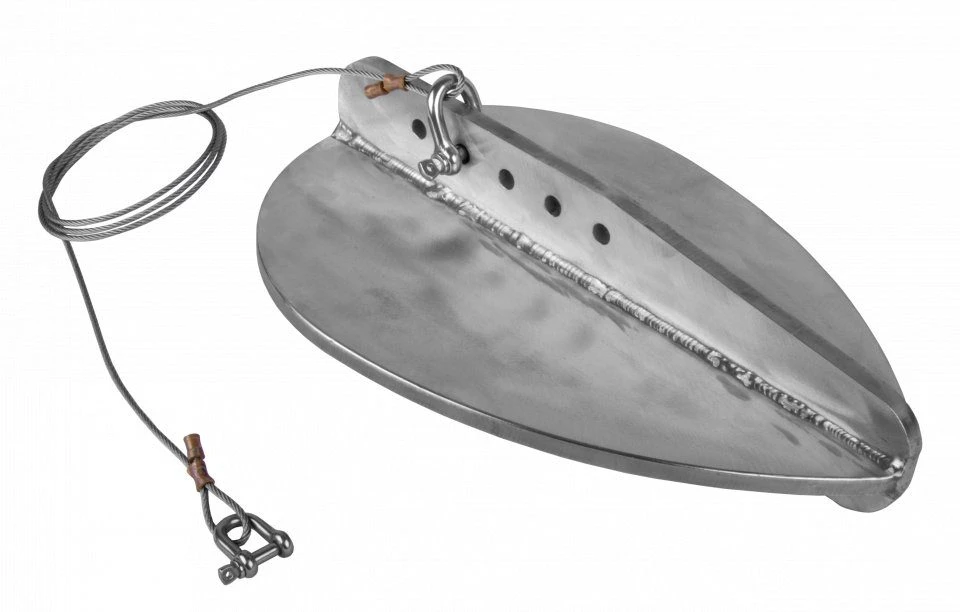 The vane is made at our Devon site and consists of a marine-grade (A4) stainless-steel body that weighs 8kg. A 1.5m stainless steel cable and 8mm shackle are attached and this is adjustable according to the towing speed and the desired position of the vane in the water. Measures 350 x 250 x 85mm (length x width x height).