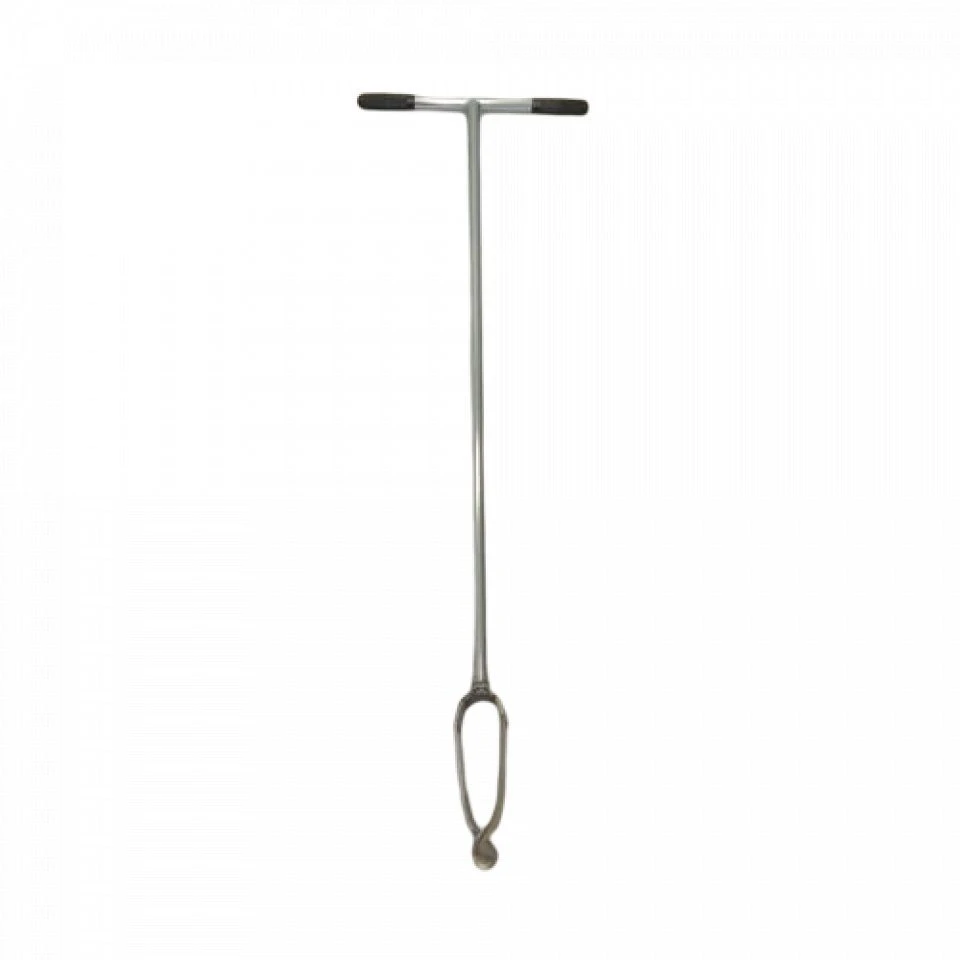 A simple fixed-handle auger for extracting soil samples. The auger is 1.2 m long with a metal shaft and T-bar handle with rubber grips at the top. It is made of high-grade non-toxic hardened steel. The auger is available with either a 4, 5, 7 or 10cm blade diameter.