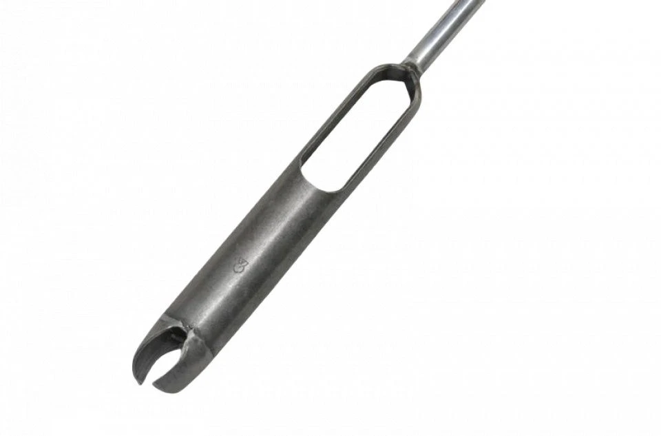 A simple fixed-handle auger for extracting soil samples. The auger is 1.2 m long with a metal shaft and T-bar handle with rubber grips at the top. It is made of high-grade non-toxic hardened steel. The auger is available with either a 7 or 10cm blade diameter.