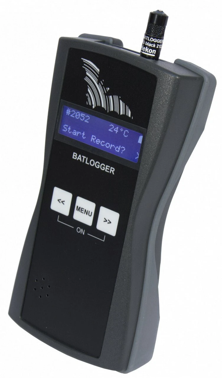 The Batlogger M from Elekon is a sophisticated bat detector / recorder designed for transect surveys and bat walks. This compact handheld device features a weatherproof FG Knowles microphone which allows it to record full spectrum ultrasonic calls over the range of 10 – 150kHz. These recordings retain details of the amplitude and harmonic structure of the original bat signal; details which play a huge role in the accurate determination of species. Files are saved in WAV format onto an internal SD card along with additional information such as location (using the built-in GPS) and temperature.