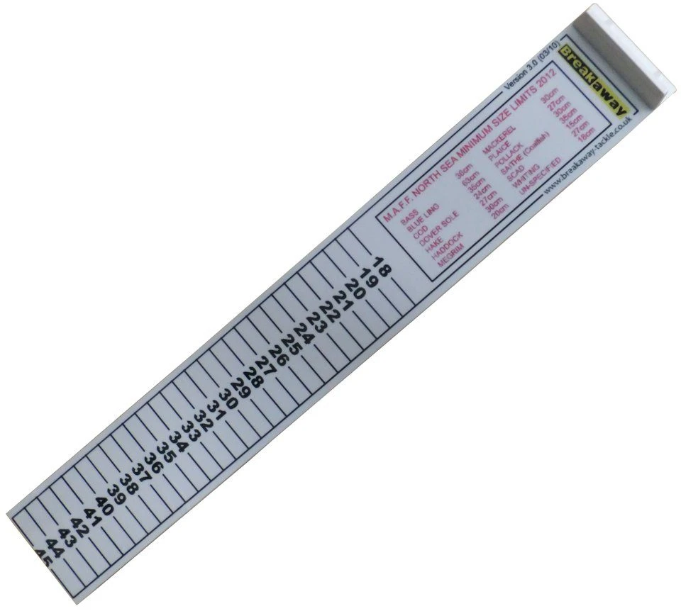This fish measure is an easy way of gauging and recording fish length and is suitable for for fish of up to 45cm. It is made from number plate quality shatterproof A.B.S. (Acrylonitrile butadiene styrene) and is reflective, making it ideal for night fishing.
