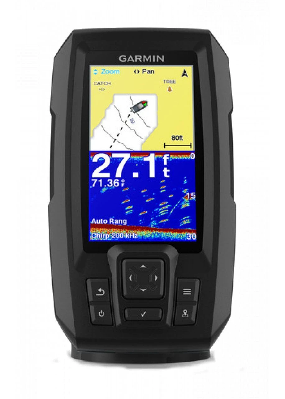 The Garmin Striker Plus 4 is a lightweight CHIRP (Compressed High Intensity Radar Pulse) transducer ideal for aquatic survey work. Able to penetrate up to 1,600 ft in freshwater and 750 ft in saltwater (dependent on substrate and water conditions), the Striker 4 allows the user to identify bottom features, spot aquatic life and mark off waypoints. Built-in GPS, adjustable depth line, AutoGain technology and split screen zoom allow for multifunctional use, be it monitoring speed along a transect or taking depth and temperature measurements at a survey site.