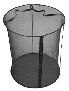 These traditional hanging flight cages are used for emerging, flying, demonstrating, pairing and insect egg-laying, especially with lepidoptera. Because they are lightweight and portable, these cages are useful for travel, offering temporary accommodation for a wide range of insects on cut plants placed inside the cage. The fine high transparency black net is sewn with no internal projecting seams, and the cages are specially designed to hang with near vertical sides with minimum ‘necking’, which would otherwise tend to trap insects at the upper corners. Both sizes of cage are fitted with a vertical entry single slider side zip.