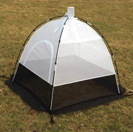 The Heavy Duty Soil Emergence Trap is designed to be structurally very strong for longer deployments. It consists of a floorless closed tent which fits onto a frame made from two shock-corded poles. Flaps at the bottom of the trap are designed to be covered in dirt to prevent insects from escaping and the two large dome-shaped zipped openings allow for easy access into the inside. Loops at each corner are for fixing the trap to the ground in windy weather (tent pegs included). A 500ml collecting bottle is situated at the apex of the trap and two replacement bottles as well as a carrying bag are provided.