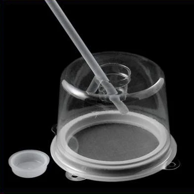 This insect bait trap from BugDorm has a nylon ventilation lid which can be easily removed for adding bait or removing insects. Holes in tabs on the side of the container allow a string to be attached so that the trap can be hung (string not included).