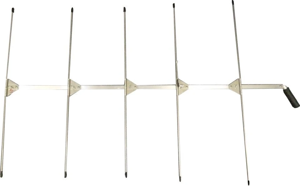 Improve your radio telemetry signal gain with the 5-element folding yagi antenna. Constructed to be robust and lightweight, there is an additional 495 mm in boom length compared to the 3-element yagi antenna. The 5-element folding yagi antenna has a fixed beam design, rubber pistol grip and simple folding elements, secured by stainless steel wing nuts. The antenna is supplied with a 300 cm coaxial cable with BNC connectors and is configured for use with 173 MHz receivers.