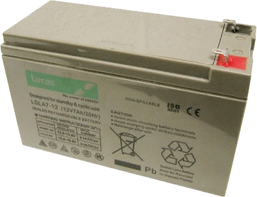 A valve-regulated, sealed lead acid type rechargeable battery providing a 12V power supply.