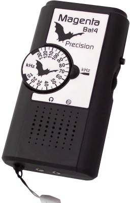 The Magenta Bat 4 is a Superheterodyne Bat Detector developed from years of feedback from users of earlier models. It has an illuminated, large diameter frequency dial which, combined with the edgewise volume and frequency controls, provides easy one-handed operation. Simply turn the dial to the frequency that you wish to be tuned to then listen to the bat calls through the speaker or headphones.