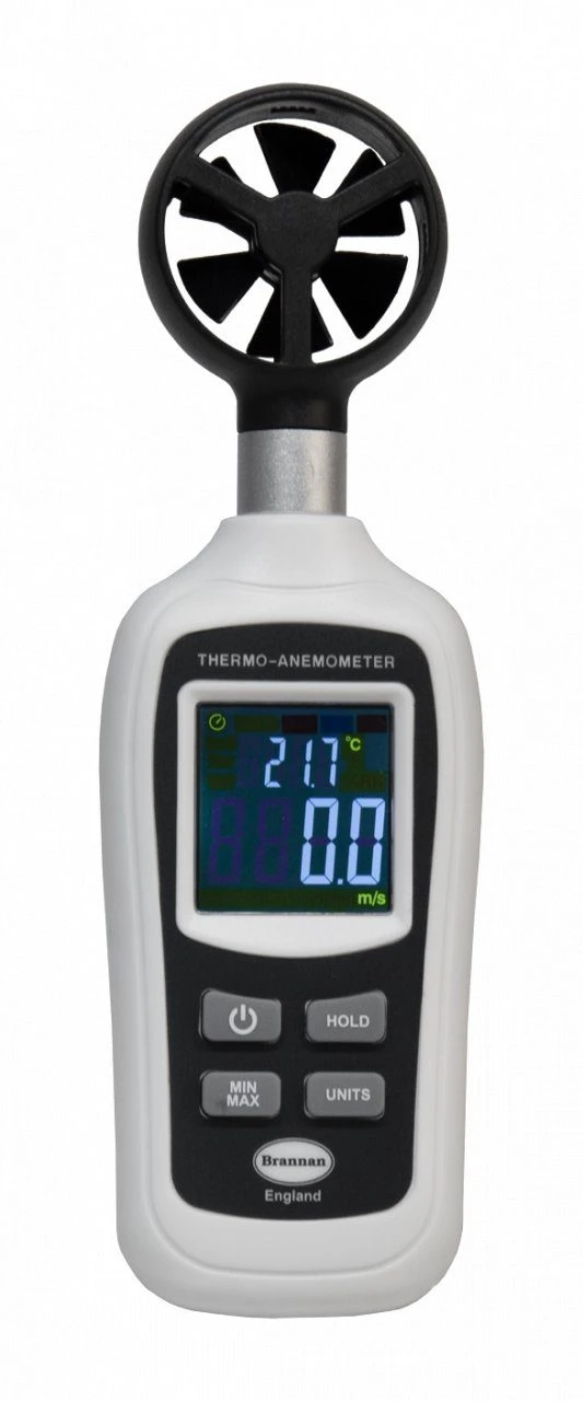 The Mini Thermo-Anemometer is a compact pocket-sized meter that is perfect for taking quick readings of temperature and air velocity in the field. Readings are displayed on an easy to read colour LCD screen which is backlit for use in low-light conditions. It can be configured to display readings in the desired units and features max/min functionality. It is powered by three AAA batteries which will provide power for up to 60 hours of continual use.