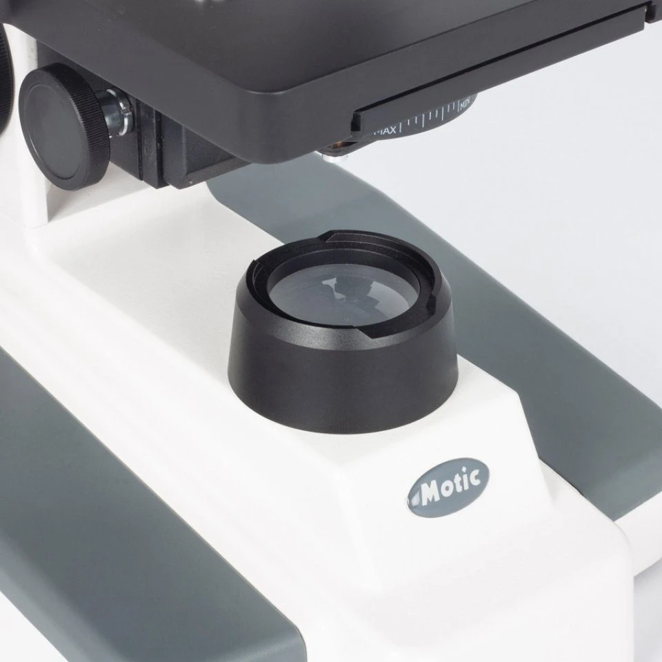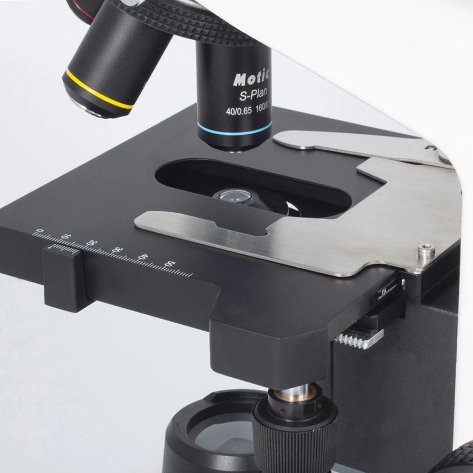 The Motic B1 compound microscope series makes an ideal tool for educators and serious naturalists. The 10x/18 eyepiece and 4x, 10x, and 40x Semi-Plan Achromat objectives provide 40-400x magnification that can be modified with alternative lenses due to motic’s modular design philosophy. The 18mm eyepieces provide clear, bright images and the coaxial coarse and fine focusing systems with tension adjustment allow for extremely precise work. The pre-installed 3W LED illumination with intesnsity control is ideal for viewing live or delicate specimens due to it’s low heat output, and the mechanical stage allows the subject to be carefully positioned just right without the need to interact with the slide directly.