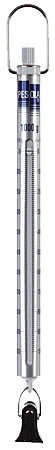 Precise and handy Spring Balance with durable anodised aluminium tube and long scale of high resolution. Tare and zero adjustment. Swivelable, rotatable and removable suspension bow, guided in a ring. Lower suspension swivels and rotates. Measurement of breaking forces up to 1000 g.