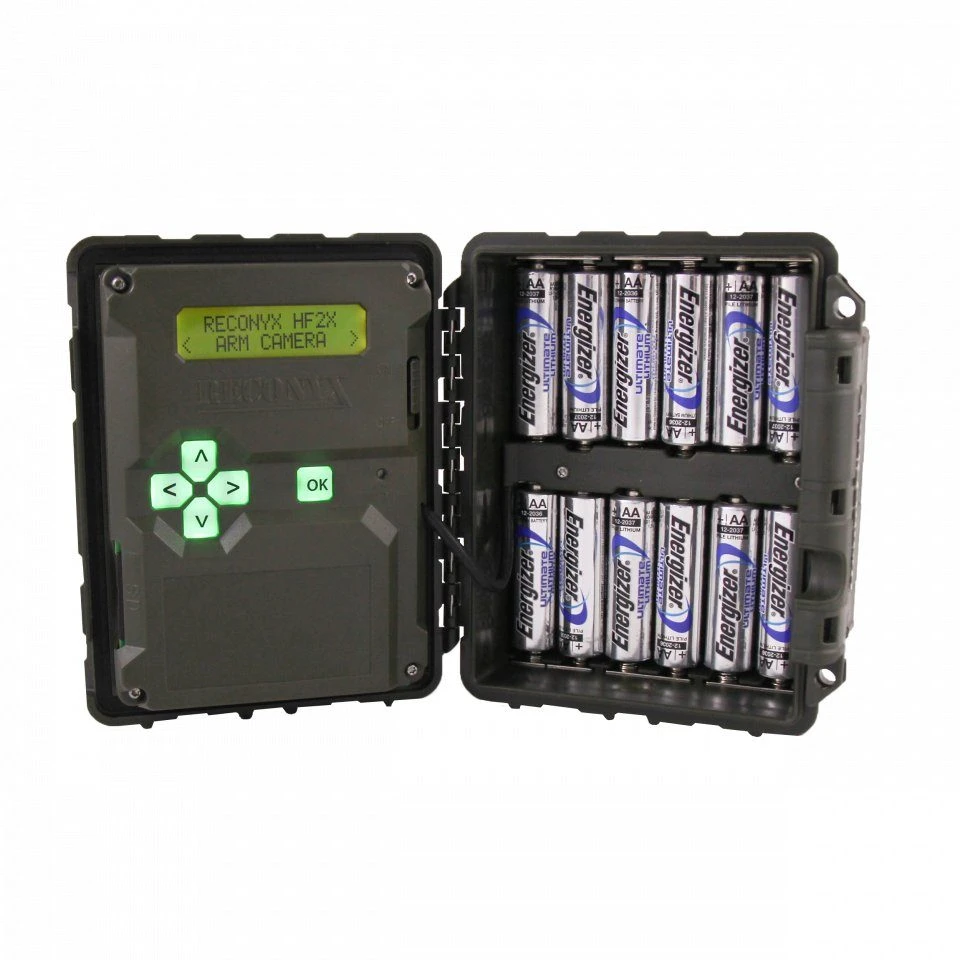 - The camera is powered by 12 x AA batteries (not included). Only high quality Li-ion or NiMH batteries should be used. Specifying the battery type within the settings menu ensures that the battery reading is accurate.
