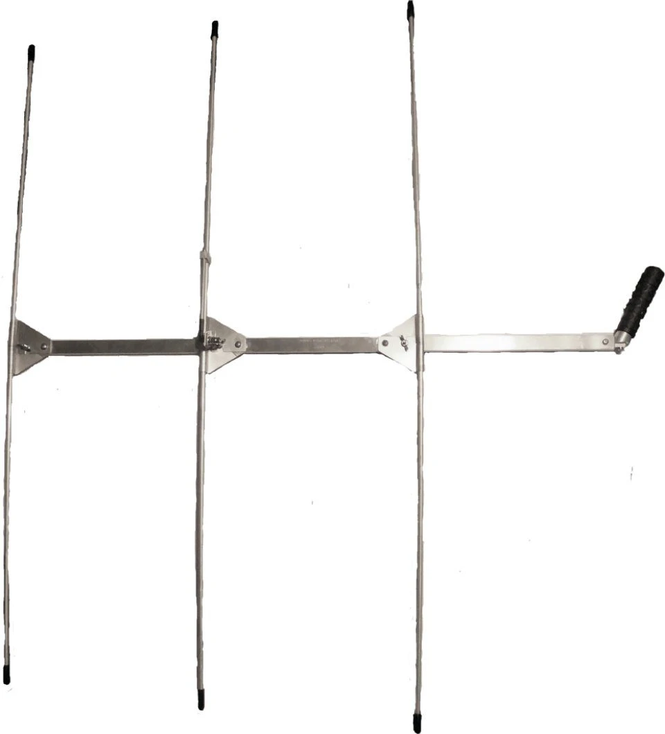 This robust but lightweight 3-element folding yagi radio telemetry antenna has been the industry standard for decades. Constructed with a fixed beam design, a choice of straight grip or rubber pistol grip and simple folding elements, secured by stainless steel wing nuts, this antenna is the perfect compromise between performance and portability in radio tracking. Antenna is configured to detect signals in the 151 MHz band and is provided with a 120 cm coaxial cable with BNC connectors.