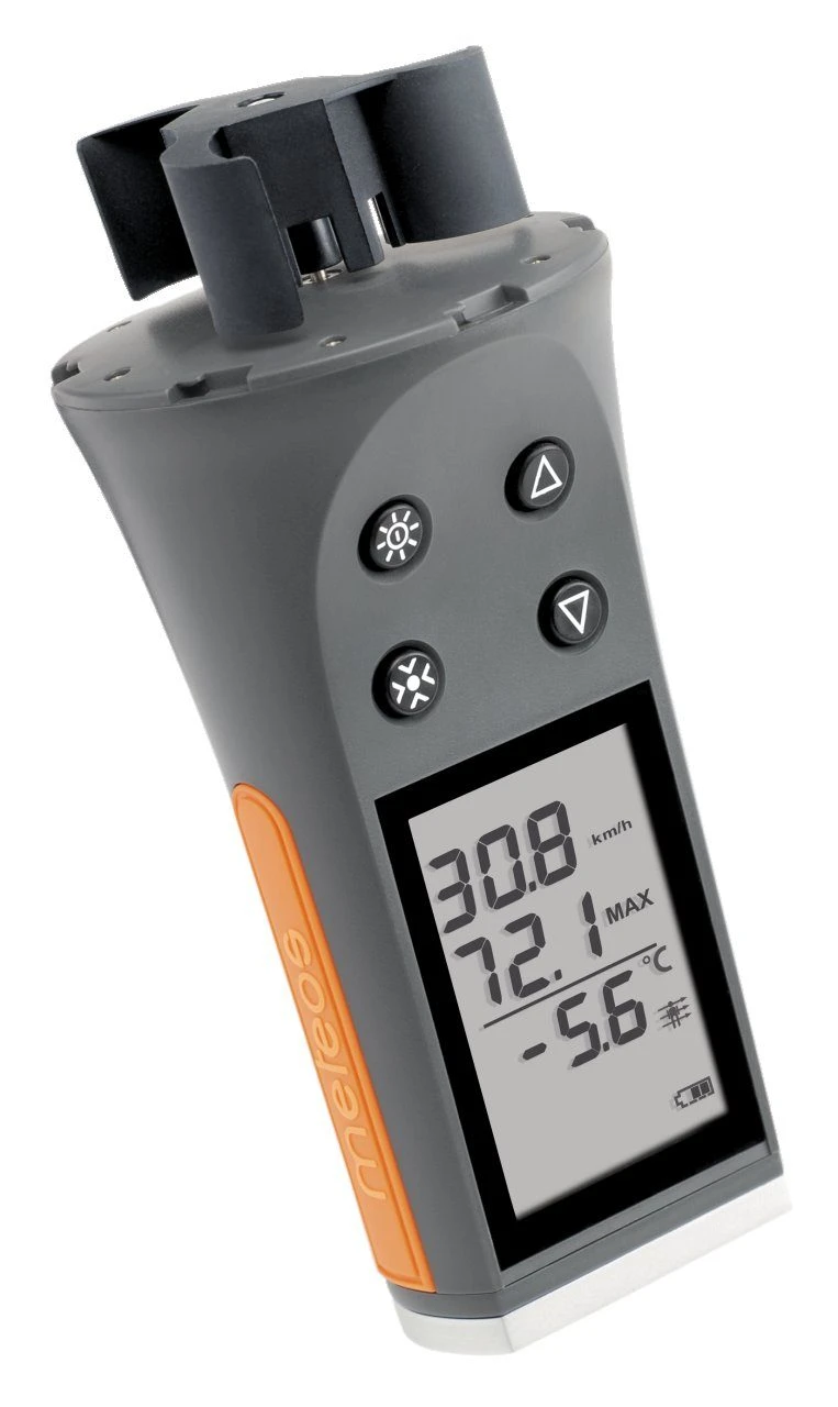 The Skywatch Meteos Thermo-Anemometer measures windspeed from 2 to 150km/h and temperature from -40° to 80°C. Current windspeed readings are displayed on the LCD screen in km/h, mph, m/s, fps, knots or beauforts and temperature in °C or °F. Maximum and average readings can also be displayed.