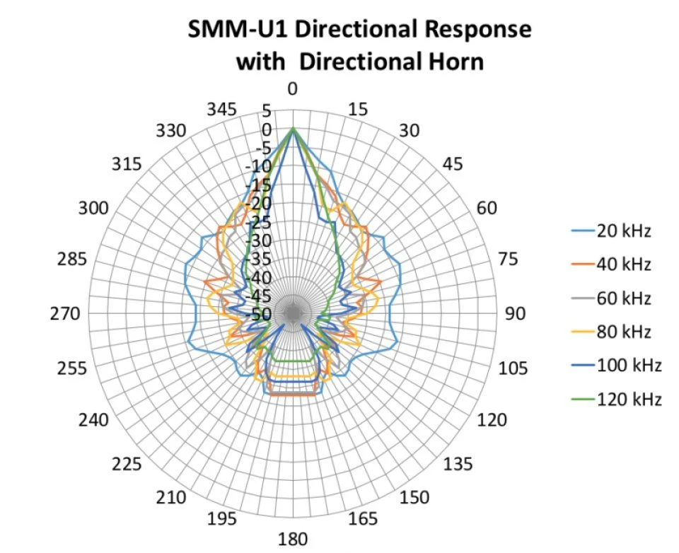 This SMM-U1 ultrasound microphone is for use with the Song Meter SM4BAT and SM3BAT recorders. The microphone has a Knowles FG element which provides a flatter frequency response and high sensitivity. It is also very resistant to water damage. The metal housing assists with grounding of the microphone.