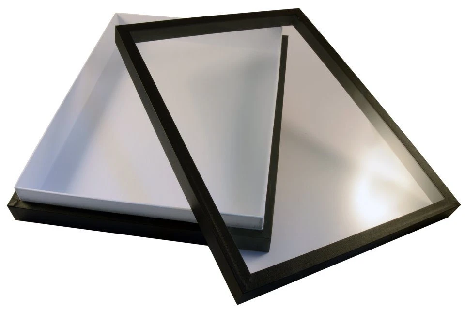 This attractive Display Box is made of wood covered with black book cloth. It has a glass lid so that specimens can be viewed without opening the box. It measures 30 x 40cm and is compatible with the which are available in different sizes so that the box can be configured to your own specifications.