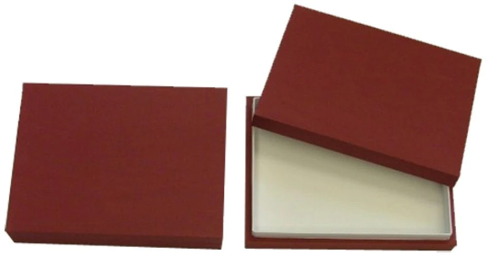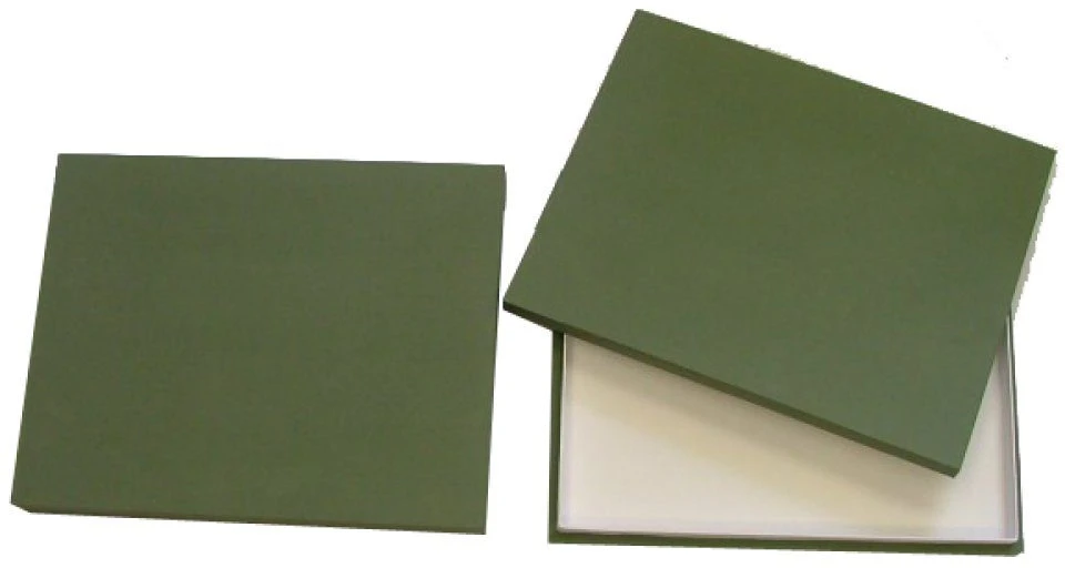 This entomological storage box is made from wood covered in book binding cloth. It measures 30 x 40 x 5.4cm and has a solid lid. A plastazote layer in the bottom of the box provides an ideal surface for pinning.