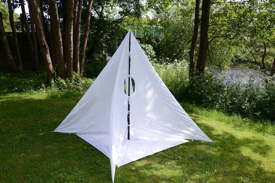 This Triangular Moth Collecting Tent is ideal for moth ID sessions involving groups. It consists of a collapsible central pole measuring 1.8m which supports a collecting cloth with four triangular wings and a square base. Corners of the wings are pegged to the ground using (not included). When a UV light (not included) is suspended onto the tent, moths will land on the collecting cloth from where they can be easily observed or collected.