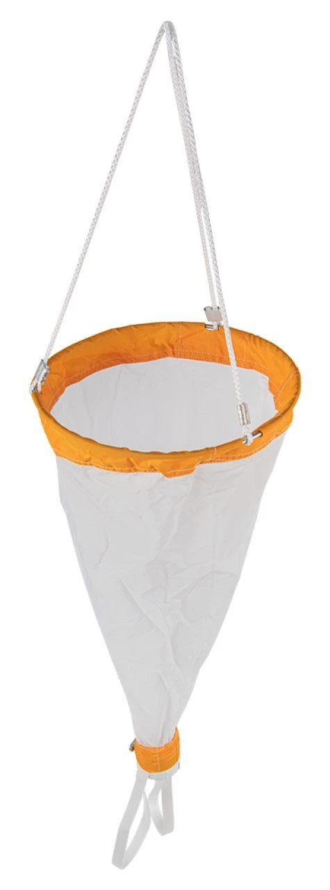 These tapered nets are designed for sampling from boreholes or wells. The net is made from 53µm mesh and has reinforced taped seams and an industrial nylon collar. A rope harness is attached at three points to the mouth of the net.